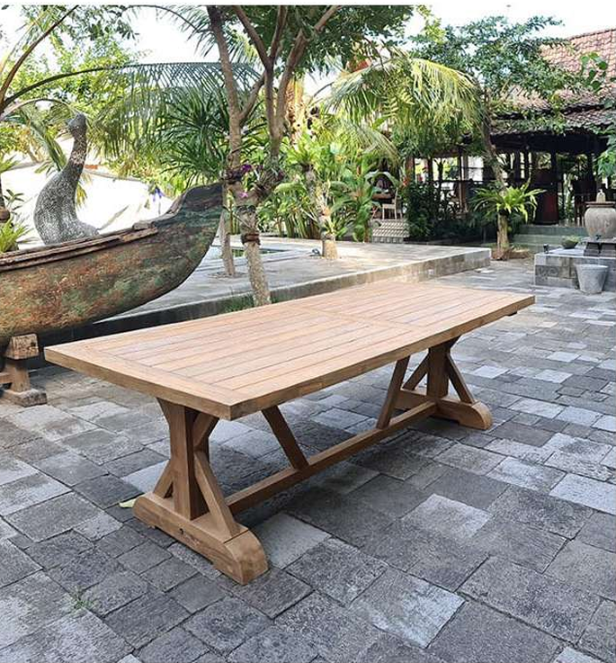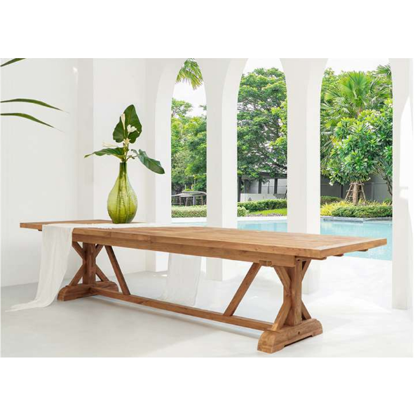 Spisebord med krydsben i genbrugt teaktræ – Indendørs og udendørs