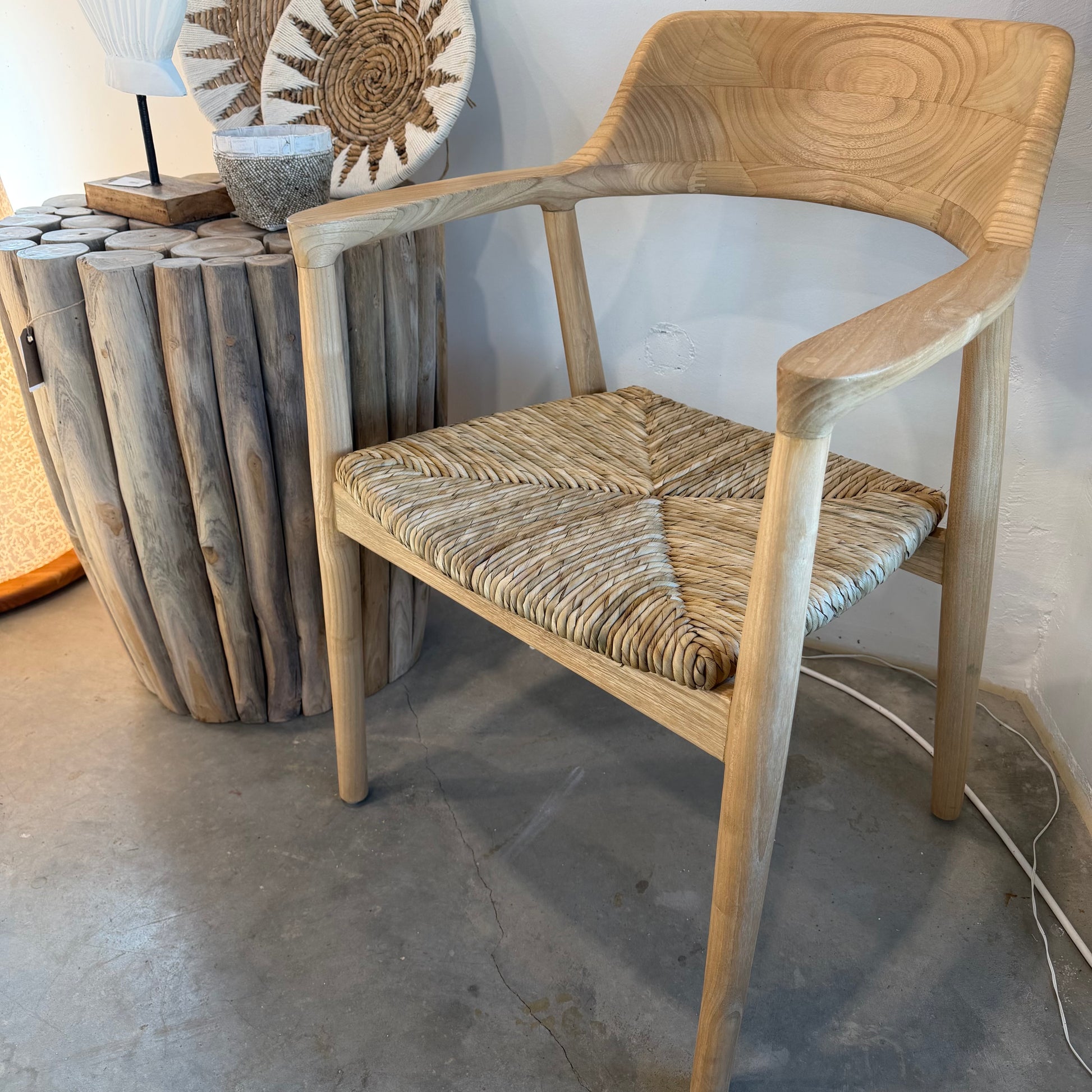 KENNEDY spisebordsstol kombinerer klassisk design med balinesisk håndværk. Denne elegante spisebordsstol er lavet af massivt sungkai-træ med et rustikt sæde i naturligt flet og skaber en varm og indbydende atmosfære omkring spisebordet. Perfekt til dem, der sætter pris på naturlige materialer og tidløst design.