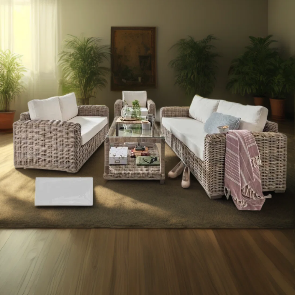 The Verona sofas are well known from our Verona Lounge group which is a beautiful and exclusive set in gray kubu rattan, sofas are now available for sale separately. These sofas for the garden, orangery or conservatory provide not only great comfort but also a great impression with their light cushions in fine quality. Can be used both indoors and outdoors, but should be moved indoors during the winter.