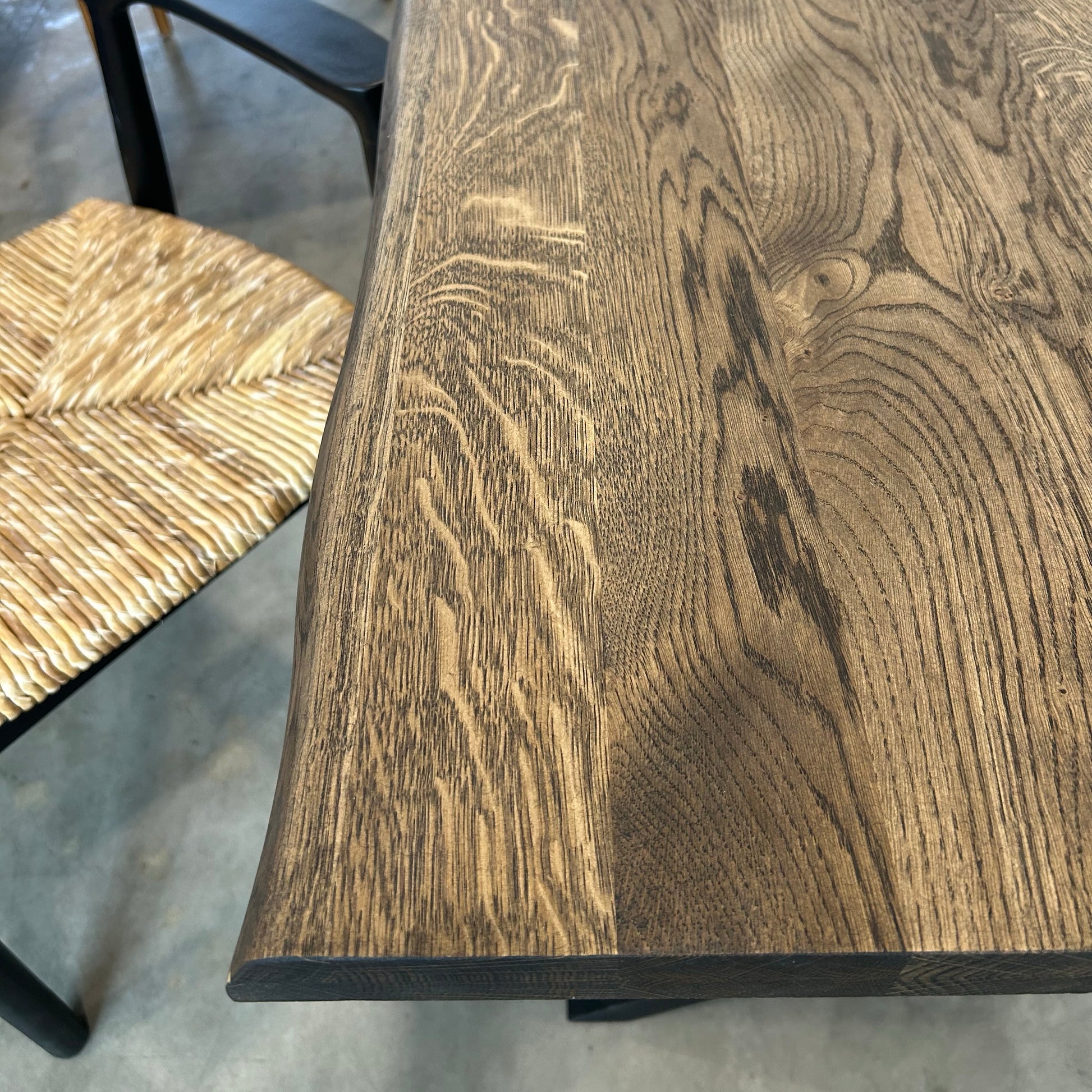 Låt vårt vackra bord KURLAND i rökt oljad ek och vågig kant bjuda in till hemmets framtida middagsbjudningar. Bordet har mattsvarta bordsben i stål som ger en iögonfallande detalj. Detta innebär att bordskanten på de två långsidorna är naturlig och vågig, precis som träet ser ut i sin naturliga form. Det ger bordet en autentisk känsla, som om det kommer direkt från naturen.