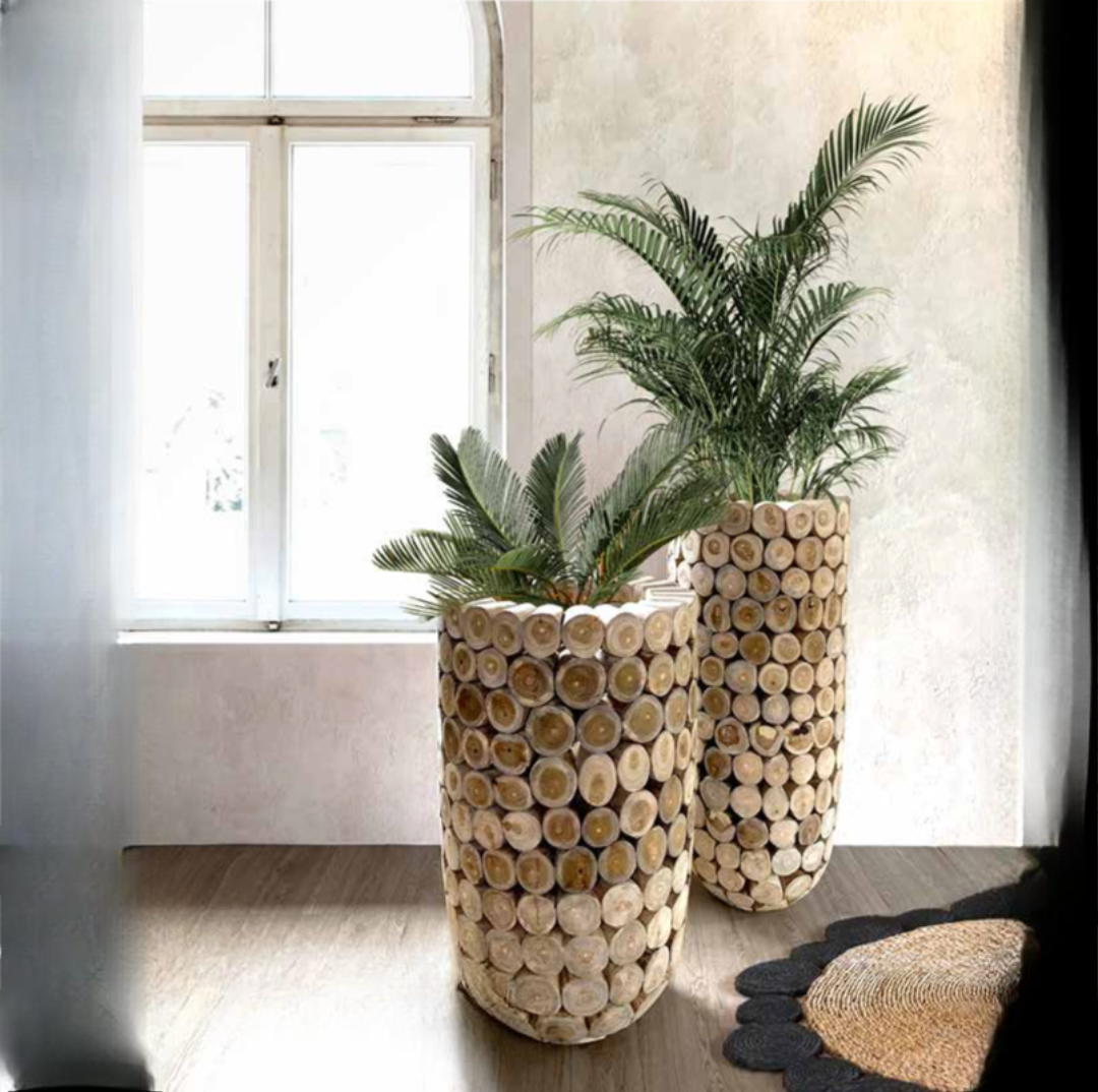 Detta Sambo Big Pot teak är tillverkat av återvunna grenar från teakträdet och förvandlar överblivet virke till ett funktionellt konstverk. Skickliga hantverkare monterar varje bord för hand, där träets naturliga former och ådringar får styra det slutliga uttrycket. Resultatet är ett miljövänligt bord som tillför genuin, organisk charm till varje rum – en perfekt kombination av hållbarhet och hantverk.