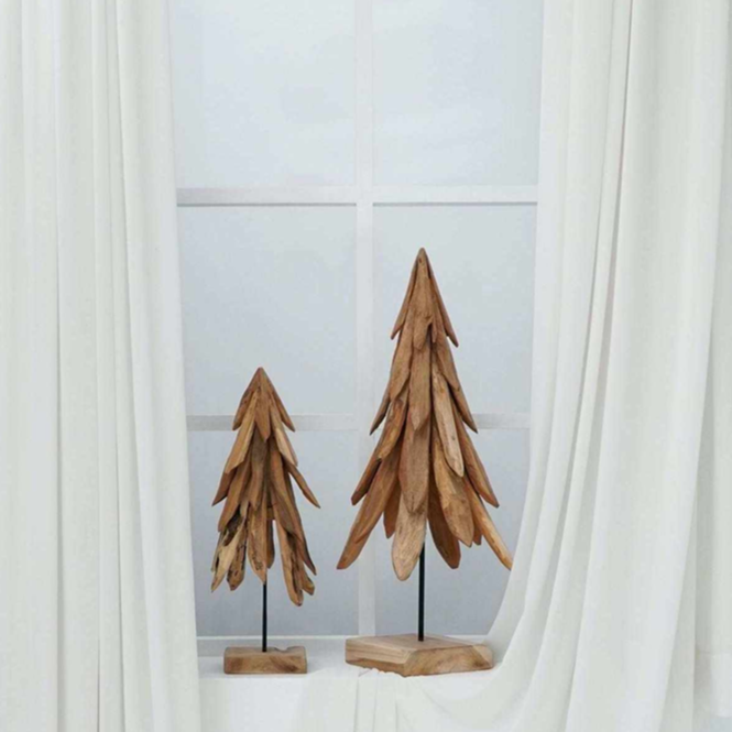 Fira julen med dessa exklusiva julgranar i teak, handgjorda av återvunnet teakträ. Den skulpturala designen lyfter fram träets naturliga former och ådringar och gör varje gran unik.
